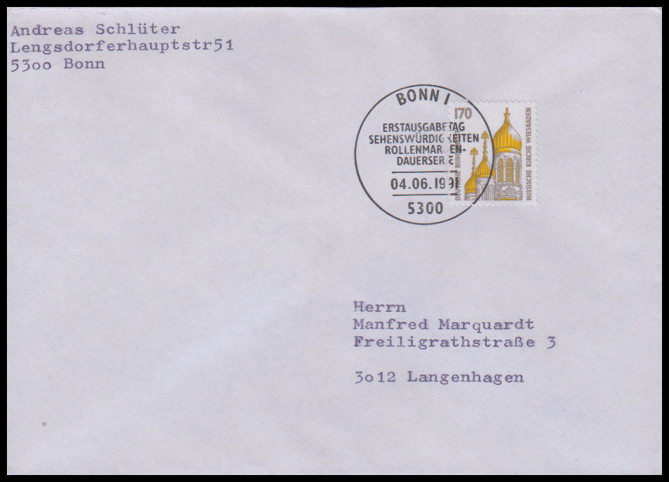 1991, Freimarken: SehenswürdigkeitenErsttagsbrief