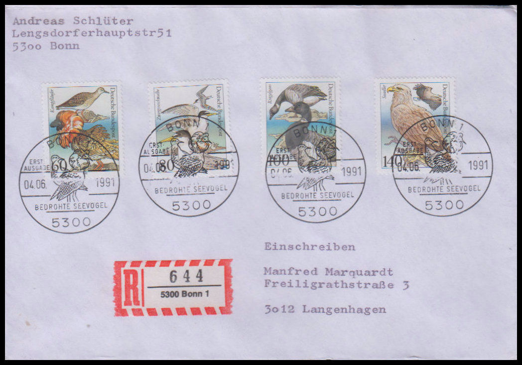 1991, Tierschutz: Bedrohte SeevögelErsttagsbrief