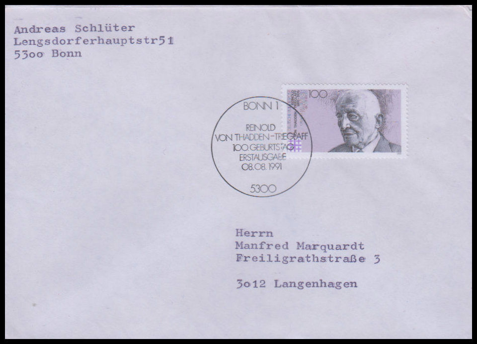 1991, Reinhold von Thadden-TrieglaffErsttagsbrief