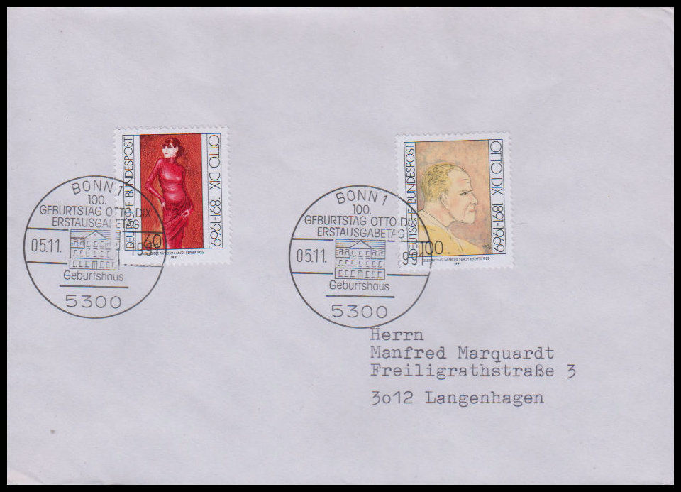 1991, 100. Geburtstag von Otto DixErsttagsbrief