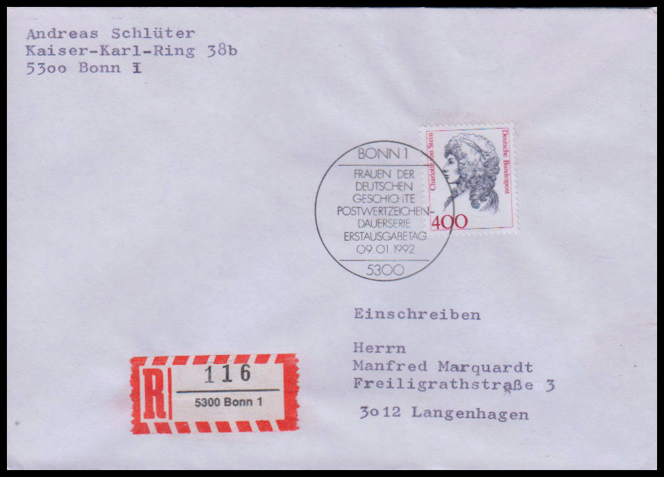 1992, Freimarken: Frauen der deutschen GeschichteErsttagsbrief