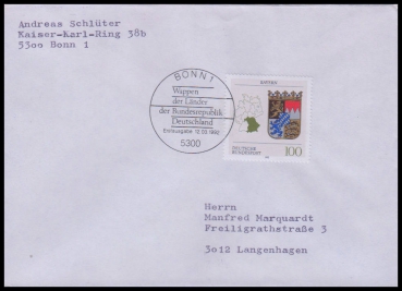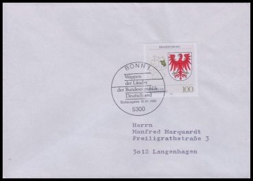 1992, WappenSatz (6 FDC), Ersttagsbriefe