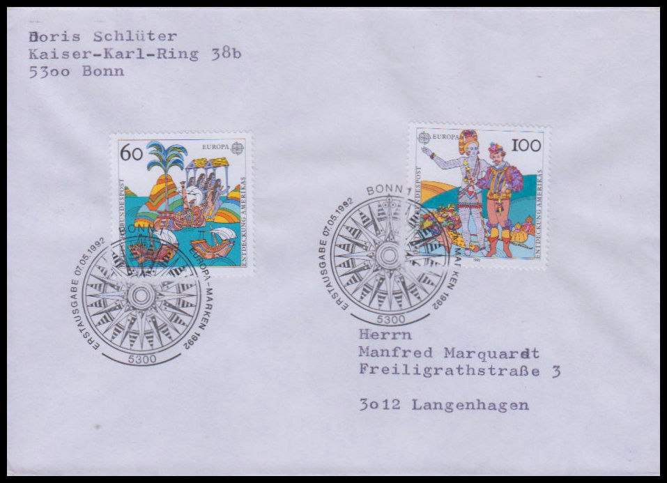 1992, Europa: 500. Jahrestag der Entdeckung von AmerikaErsttagsbrief