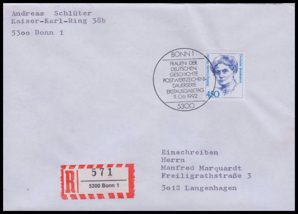1992, Freimarke: Frauen der deutschen GeschichteErsttagsbrief
