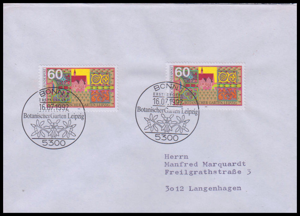 1992, Natur- und Umweltschutz: Botanischer Garten, LeipzigErsttagsbrief