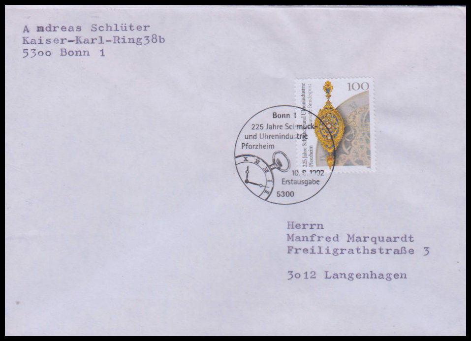 1992, 225 Jahre Schmuck- und Uhrenindustrie, PforzheimErsttagsbrief