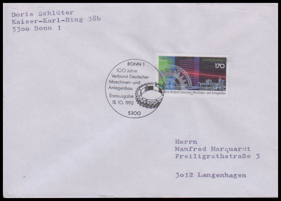 1992, 100 Jahre Verband Deutscher Maschinen- und Anlagenbau (VDMA)Ersttagsbrief