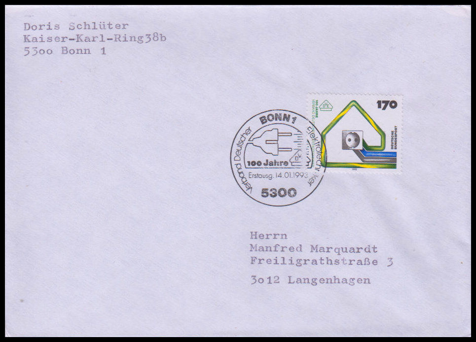1993, 100 Jahre Verband Deutscher Elektrotechniker (VDE)Ersttagsbrief