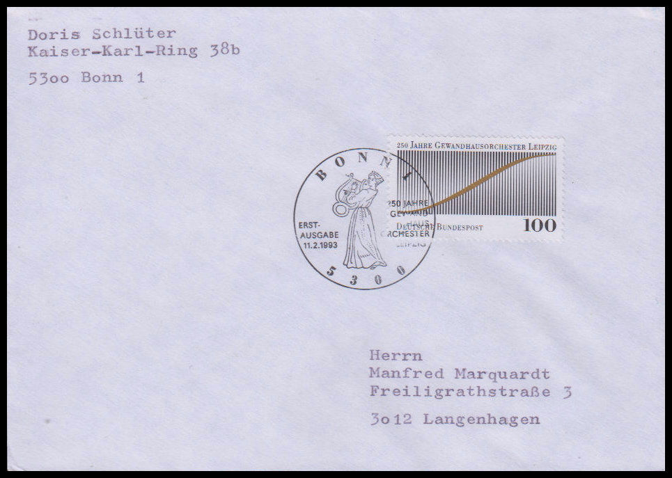 1993, 250 Jahre Gewandhausorchester LeipzigErsttagsbrief