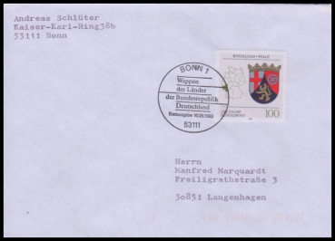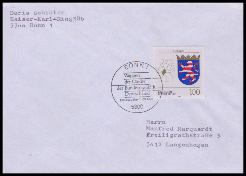 1993, Wappen der Länder der Bundesrepublik Deutschland (II)Ersttagsbrief