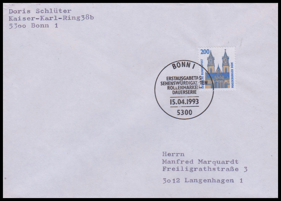 1993, Freimarke: SehenswürdigkeitenErsttagsbrief