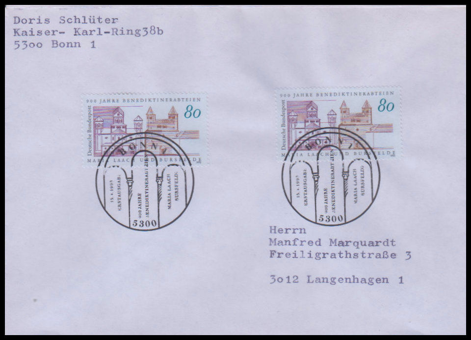 1993, 900 Jahre Benediktinerabteien Maria Laach und BursfeldeErsttagsbrief