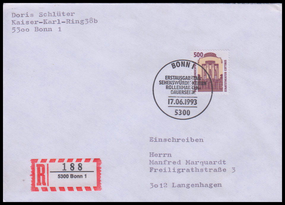 1993, Freimarke: SehenswürdigkeitenErsttagsbrief