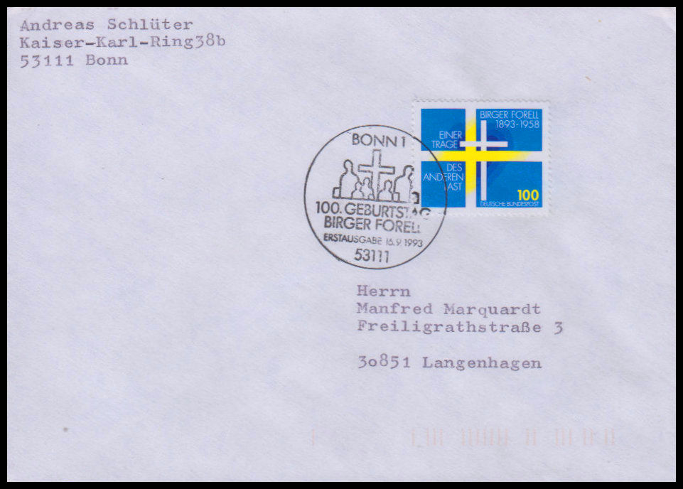 1993, 100. Geburtstag von Birger ForellErsttagsbrief