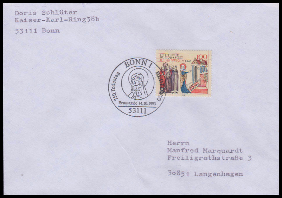 1993, 750. Todestag der hl. HedwigErsttagsbrief