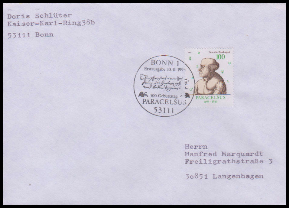 1993, 500. Geburtstag von ParacelsusErsttagsbrief