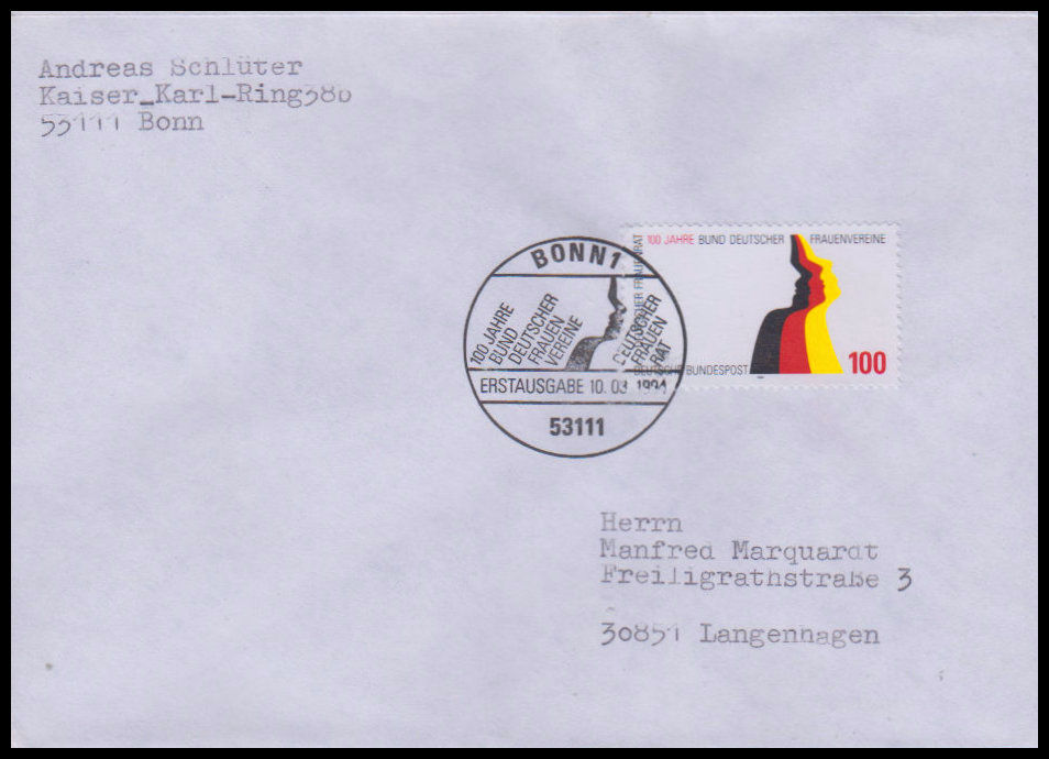 1994, 100 Jahre Bund Deutscher FrauenvereineErsttagsbrief