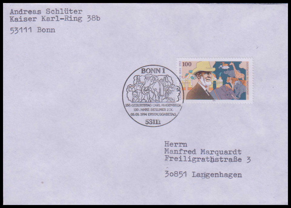 1994, 150. Geburtstag von Carl HagenbeckSatz (2 FDC), Ersttagsbriefe