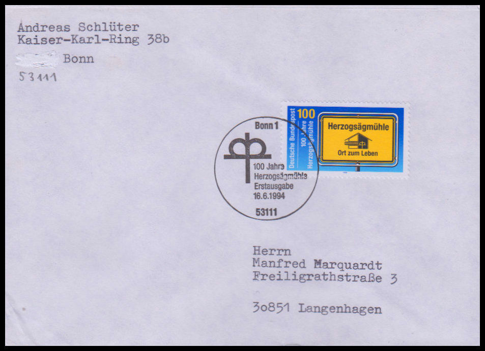 1994, 100 Jahre HerzogsägmühleErsttagsbrief