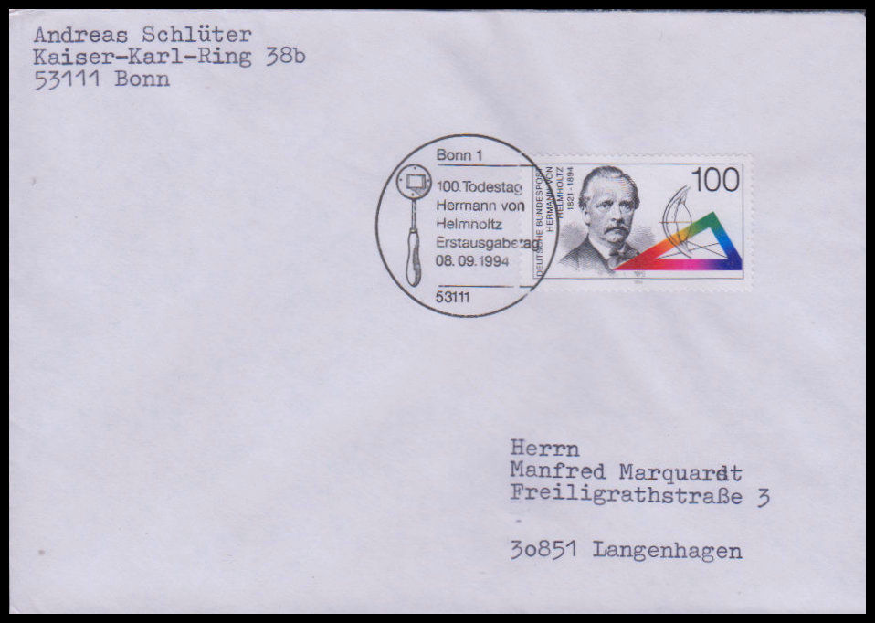 1994, 100. Todestag von Hermann von HelmholtzErsttagsbrief