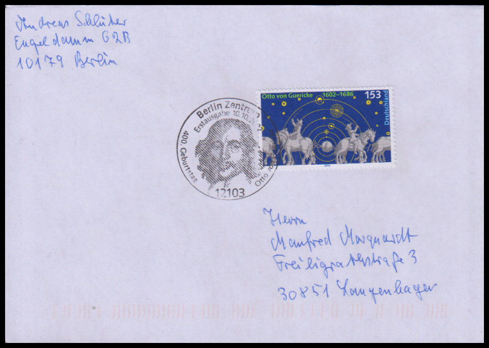 2002, 400. Geburtstag von Otto von GuerickeErsttagsbrief