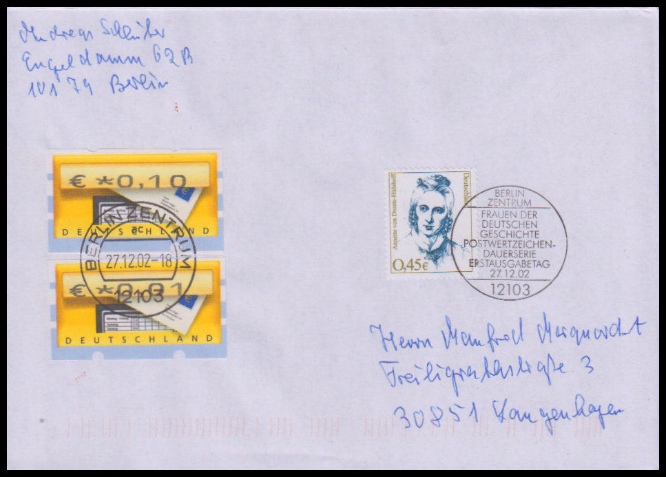 2002, Freimarken: FrauenSatz (3 FDC), Ersttagsbriefe