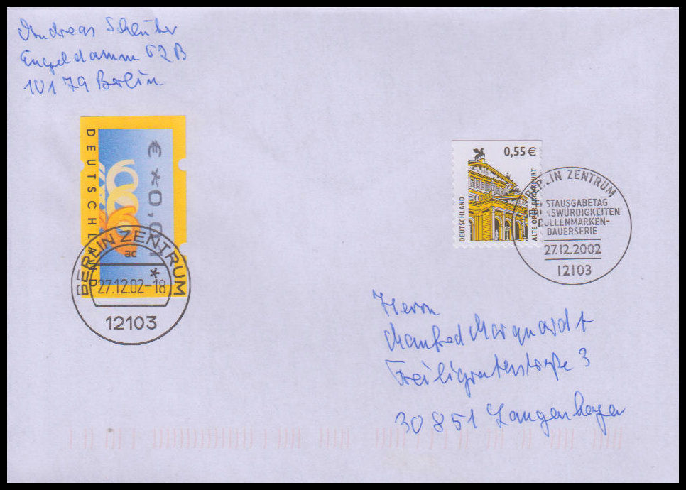 2002, Freimarken: Sehenswürdigkeitenoben gerade geschnittenErsttagsbrief