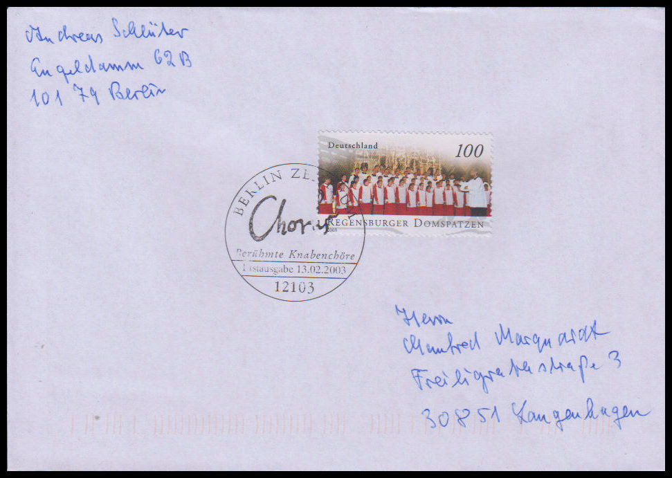 2003, KnabenchöreSatz (3 FDC), Ersttagsbriefe