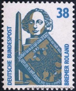 1989, Sehenswürdigkeiten38 (Pf) - Rolandsäule, Bremen-------------------------------------------------------------------gelbliche PlanatolgummierungRollengröße: 2000, mit ungerader Nummer-------------------------------------------------------------------Rollenmarke mit rückseitiger Nummer, postfrisch