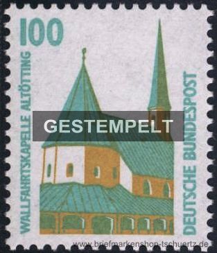1989, Freimarken: Sehenswürdigkeiten 100 (Pf) - Wallfahrtskapelle, Altötting-------------------------------------------------------------------mit gerader waagrechter NummerRollengröße: 300-------------------------------------------------------------------Rollenmarken, 5er-Streifen, gestempelt