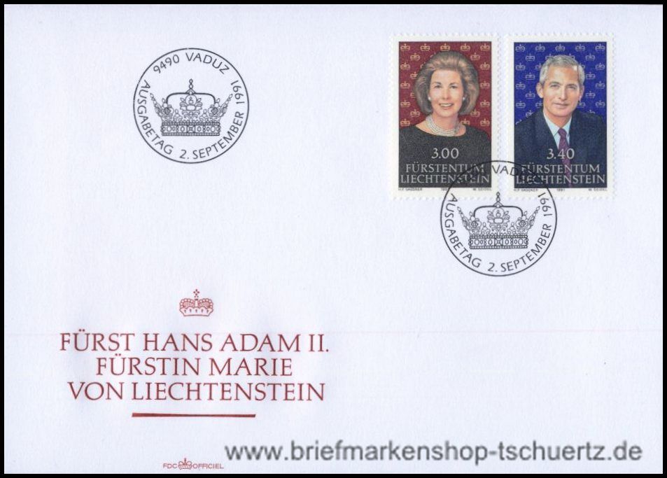 1991, Fürst Hans-Adam II. und Fürstin MarieOff. Ersttagsbrief mit Sonderstempel