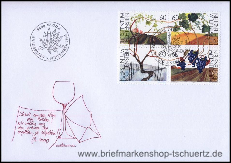 1994, Die Weinrebe in den vier JahreszeitenOff. Ersttagsbrief mit Sonderstempel