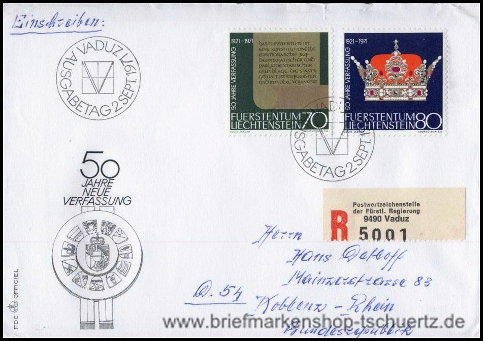 1971, 50 Jahre neue VerfassungErsttagsbriefHINWEIS: Brief oben eingerissen