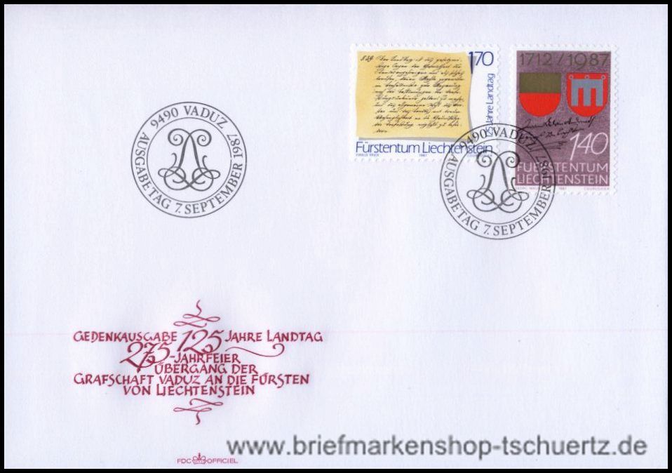1987, 275. Jahrestag des Erwerbs der Grafschaft Vaduz /125 Jahre LandtagOff. Ersttagsbrief mit Sonderstempel