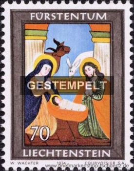 1974, Weihnachten: HinterglasmalereiSatz (4 W.), gestempelt