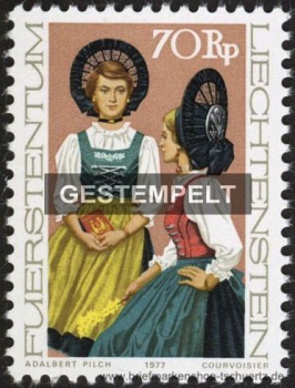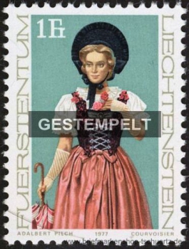 1977, Liechtensteiner Trachten (I)Satz (3 W.), gestempelt
