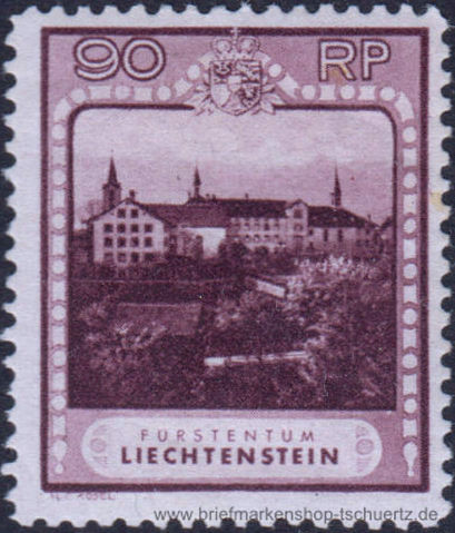 1930, Freimarke: Landschaften und Fürstenpaar 90 Rp - Kloster Schellenberg gezähnt L 11 1/2 Einzelmarke, ungebraucht mit Originalgummierung (Falz)