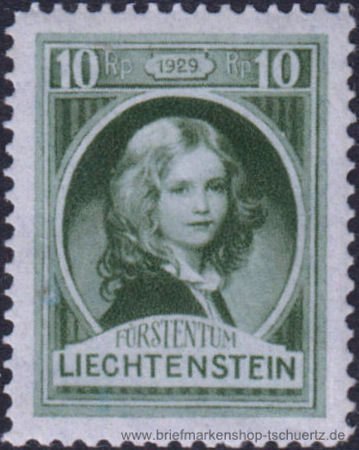 1929, Regierungsantritt von Fürst Franz I.10 Rp - Fürst Franz I., JugendbildEinzelmarke, ungebraucht mit Originalgummierung (Falz)