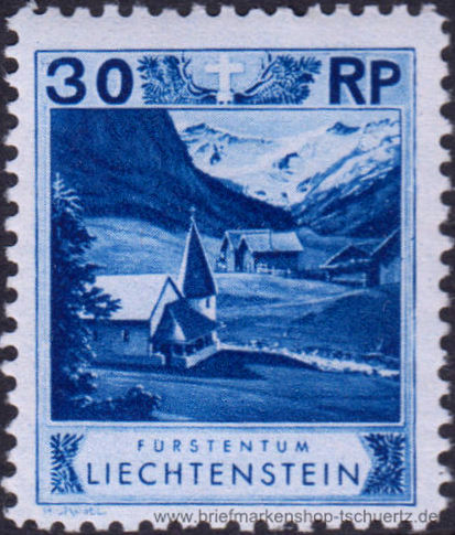 1930, Freimarke: Landschaften und Fürstenpaar 30 Rp - Kapelle im Steg-Saminatal gezähnt L 10 1/2 Einzelmarke, ungebraucht mit Originalgummierung (Falz)