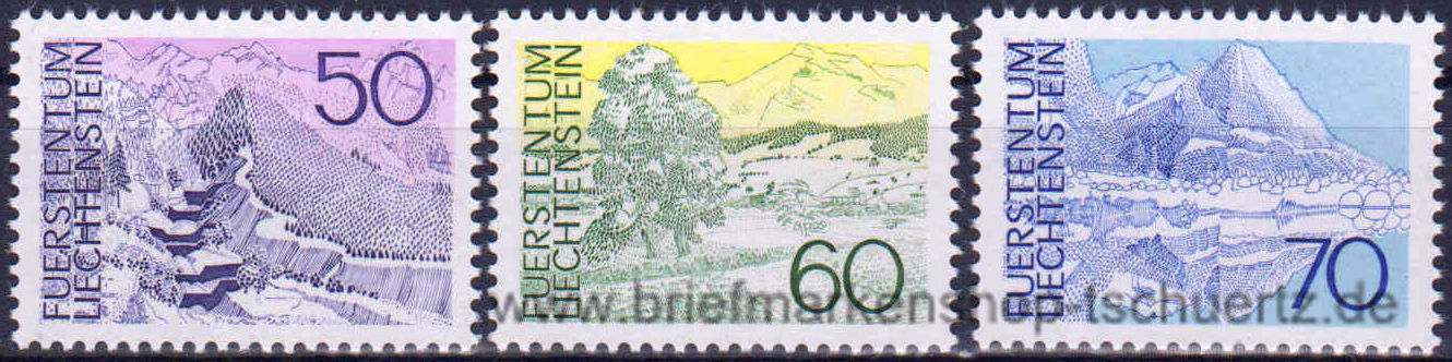 1973, Landschaften (III)Freimarken, Satz (3 W.), postfrisch