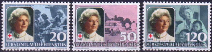 1985, Fürstin Gina von Liechtenstein, 40 Jahre Präsidentin des Liechtensteinischen Roten KreuzesSatz (3 W.), postfrisch