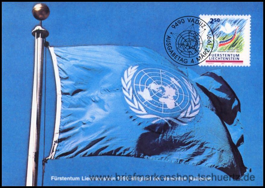 1991, Beitritt Liechtensteins zu den Vereinten Nationen (1990)Satz (1 St.), Maximumkarte