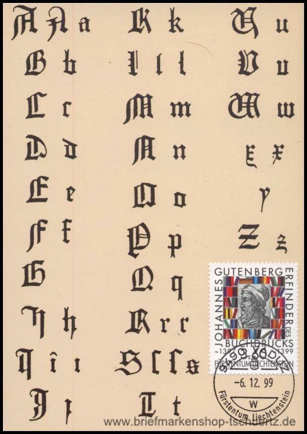 1999, 600. Geburtstag von Johannes GutenbergSatz (1 St.), Maximumkarte