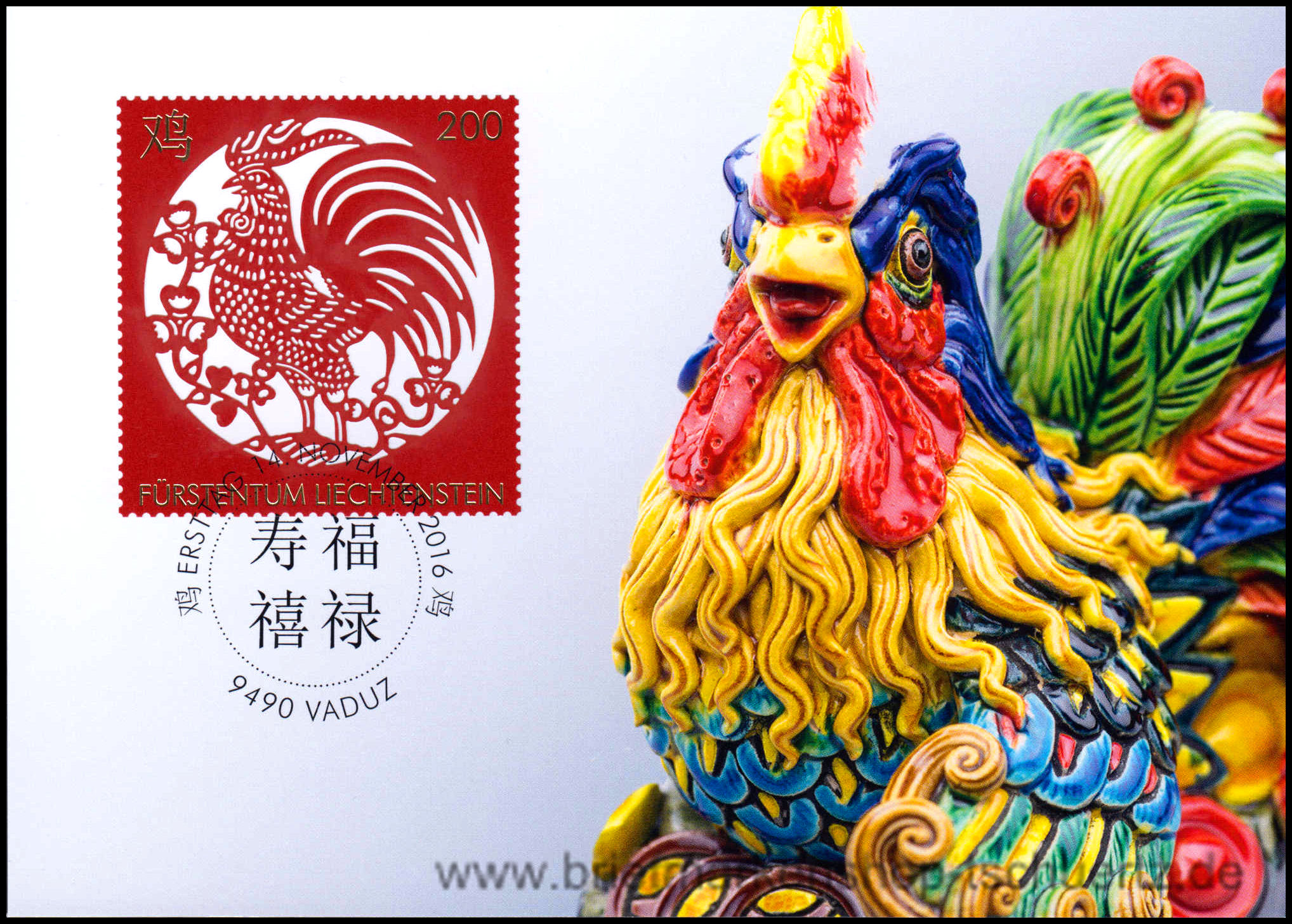 2016, Chinesisches Neujahr: Jahr des HahnesSatz (1 St.), Maximumkarte