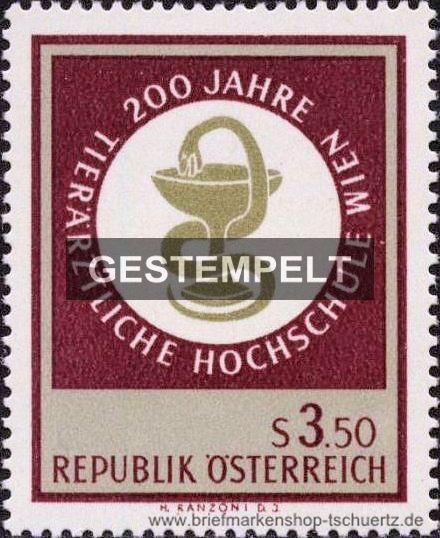 1968, 200 Jahre Tierärztliche Hochschule Wien Satz (1 W.), gestempelt