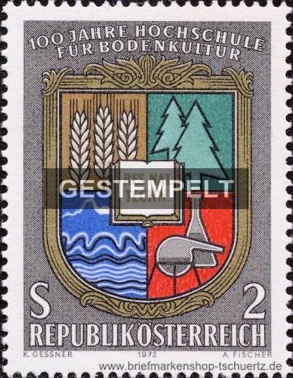 1972, 100 Jahre Hochschule für Bodenkultur Satz (1 W.), gestempelt