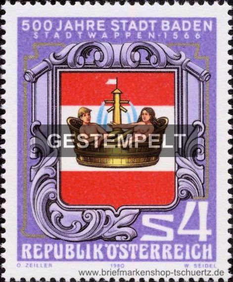 1980, 500 Jahre Stadt Baden Satz (1 W.), gestempelt