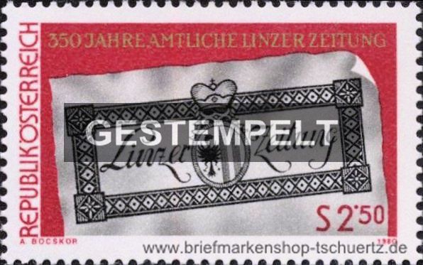 1980, 300 Jahre Amtliche Linzer Zeitung Satz (1 W.), gestempelt