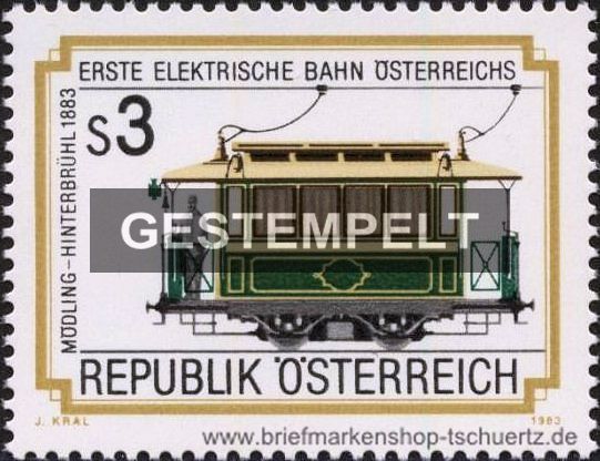 1983, Erste elektrische Bahn Österreichs: Mödling-Hinterbrühl Satz (1 W.), gestempelt