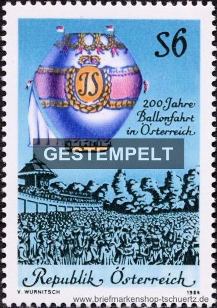 1984, 200 Jahre Ballonfahrt in ÖsterreichSatz (1 W.), gestempelt